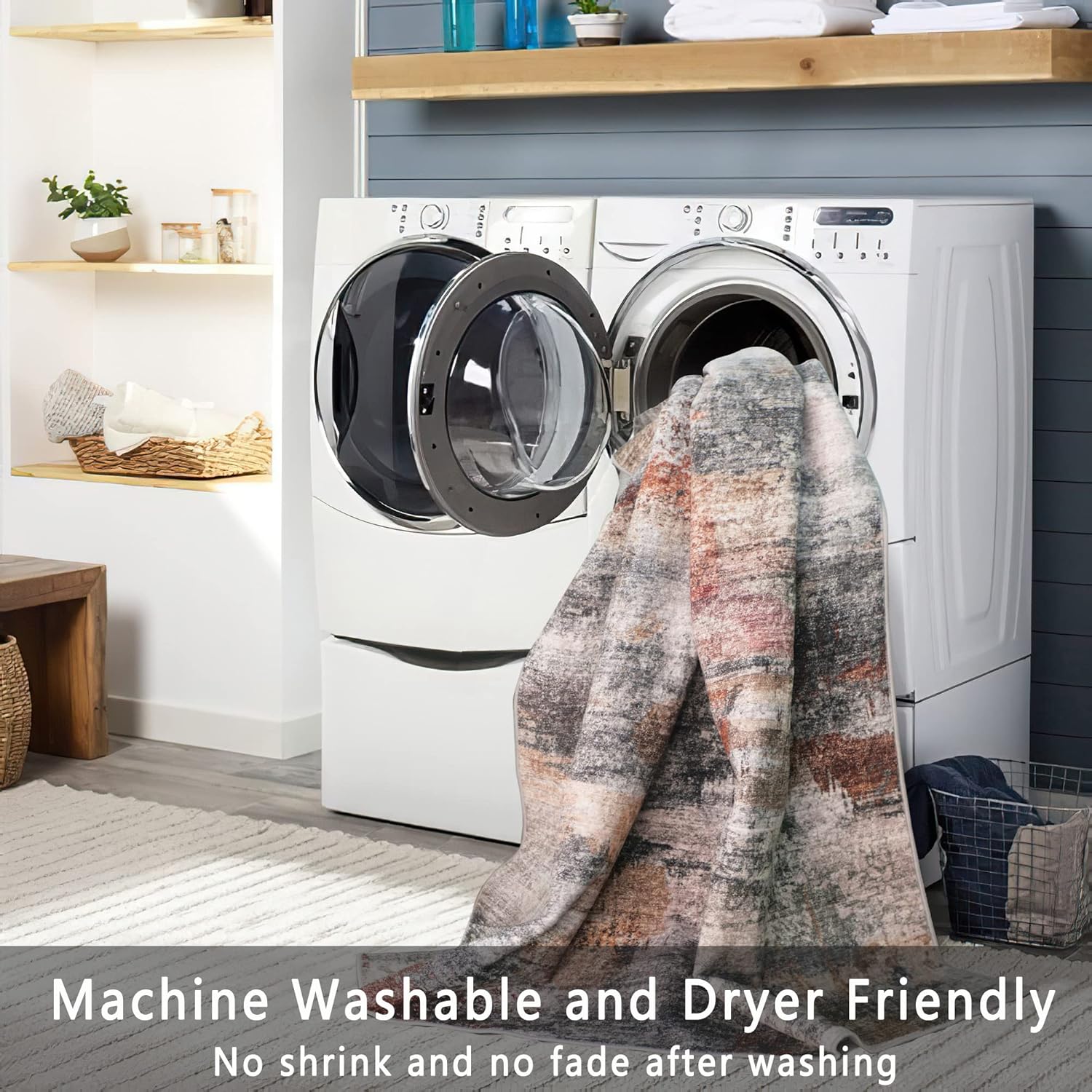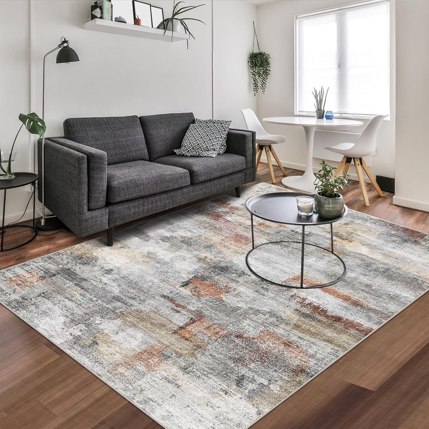 Transform your living space with the Vivorug Washable Rug, a perfect blend of style, comfort, and practicality. This ultra-soft area rug measures 4×6 feet, making it an ideal addition to any living room, bedroom, or small area in need of a touch of modern elegance. The striking gray and rust abstract design adds a contemporary flair that complements a wide range of interior decors.