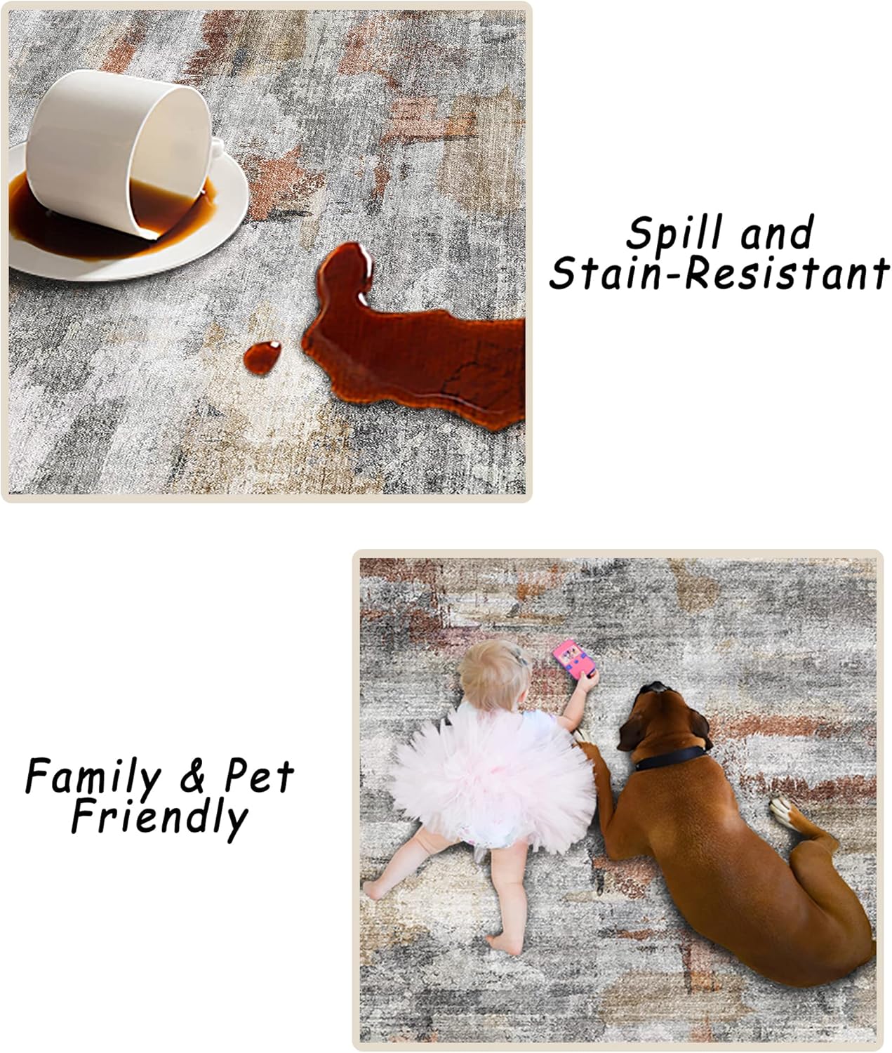 vivorug Washable Rug, Ultra Soft Area Rug 4×6, Non Slip Abstract Small Rug, Stain Resistant Rugs for Living Room Bedroom, Modern Fluffy (Gray/Rust, 4’x6′)